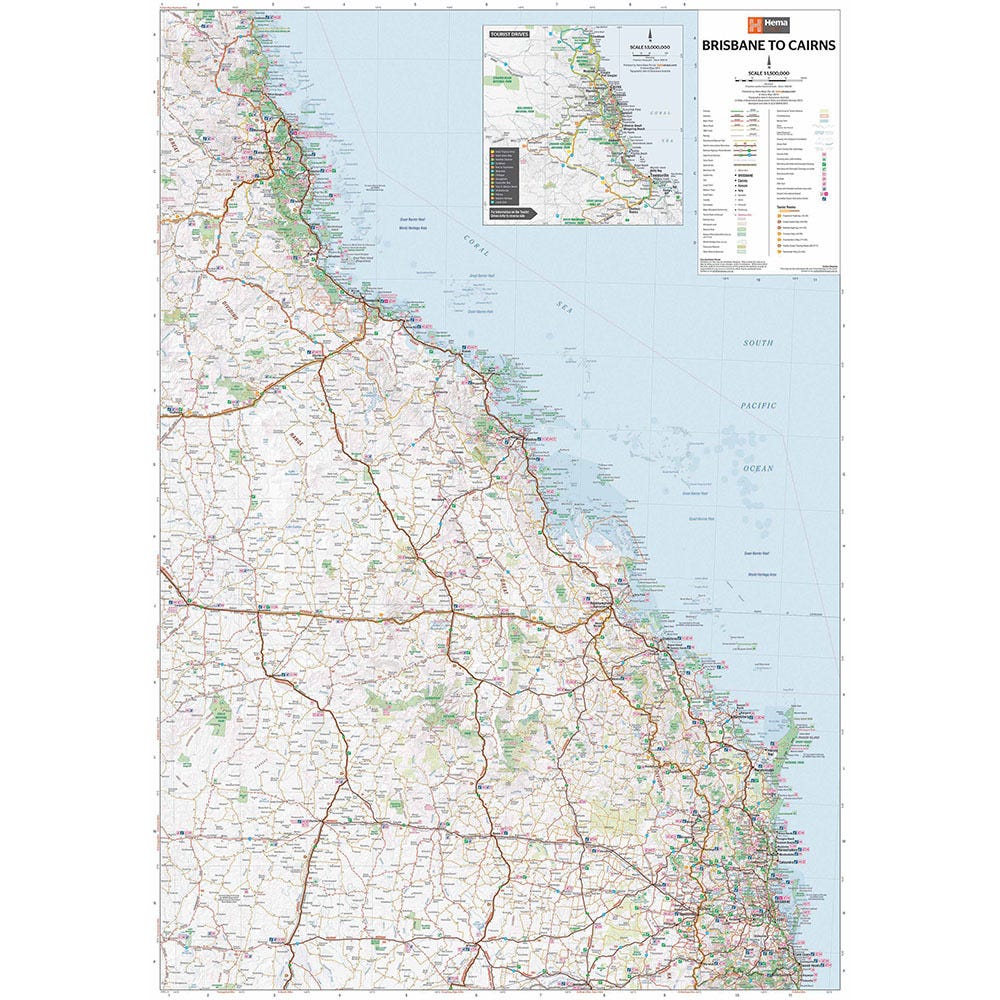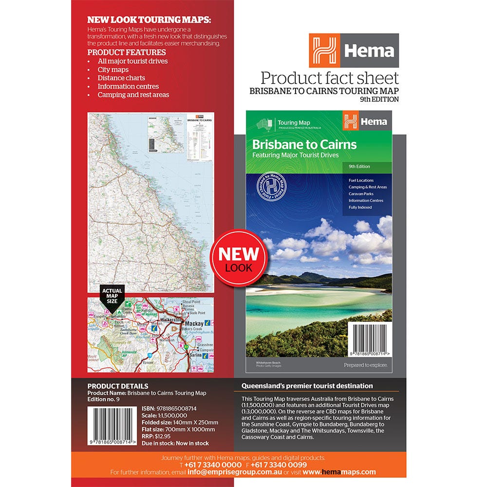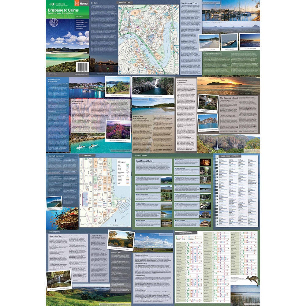 This Touring Map traverses Australia from Brisbane to Cairns (at a scale of 1:1,500,000) and features an additional Tourist Drives map (at a scale of 1:3,000,000). On the reverse side are CDB maps of Brisbane and Cairns as well as region-specific touring information for the Sunshine Coast, Gympie to Bundaberg, Bundaberg to Gladstone, Mackay and The Whitsundays, Townsville, the Cassowary Coast and Cairns.