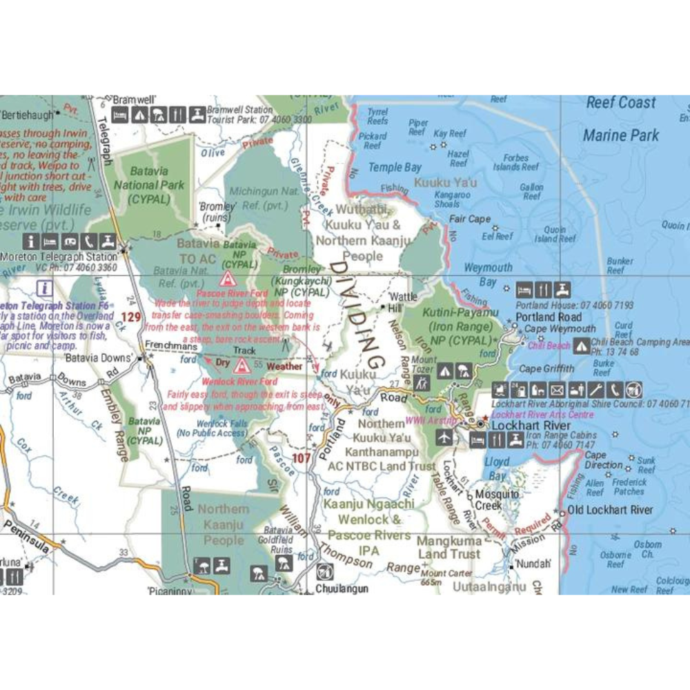 Moreover, this edition introduces new inset maps for the CREB Track and Rinyirru (Lakefield) National Park. These insets provide detailed coverage of these specific areas, offering you enhanced accuracy and guidance when exploring these unique regions. Additionally, the map continues to cover the full Old Telegraph Track and Frenchmans Track, ensuring you have comprehensive information for these iconic and challenging tracks.