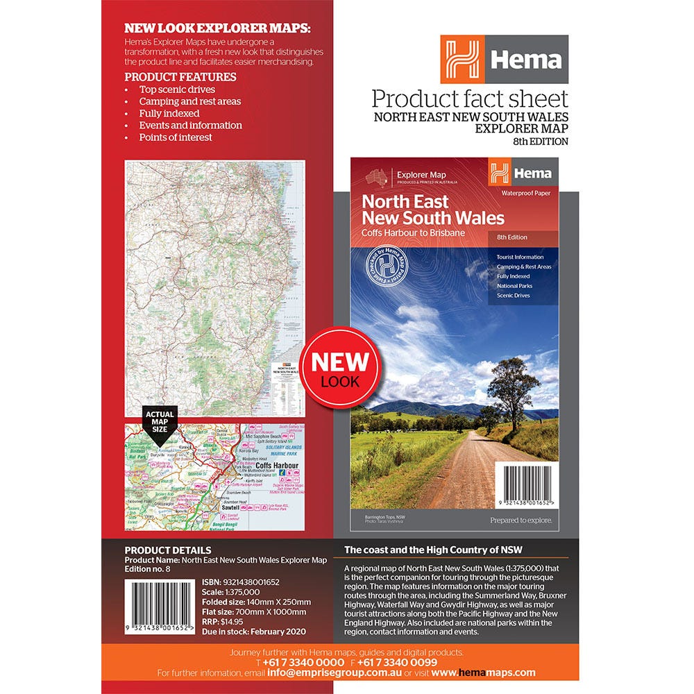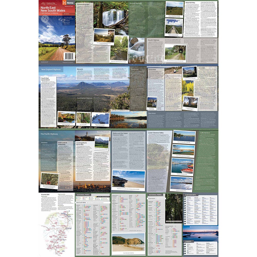 A regional map of North East New South Wales (1:375,000) that is the perfect companion for touring through North East New South Wales (NSW). The map features information on the major touring routes through the region including the Summerland Way, Bruxner Highway, Waterfall Way and Gwydir Highway, as well as major tourist attractions along both the Pacific Highway and the New England Highway. Also included are listed national parks within the region, contact information and events.
