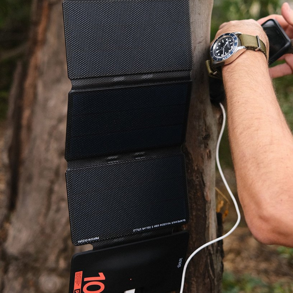 You can charge all USB-A-connected devices directly or charge an external power bank to store energy for later use. (Power bank sold separately)