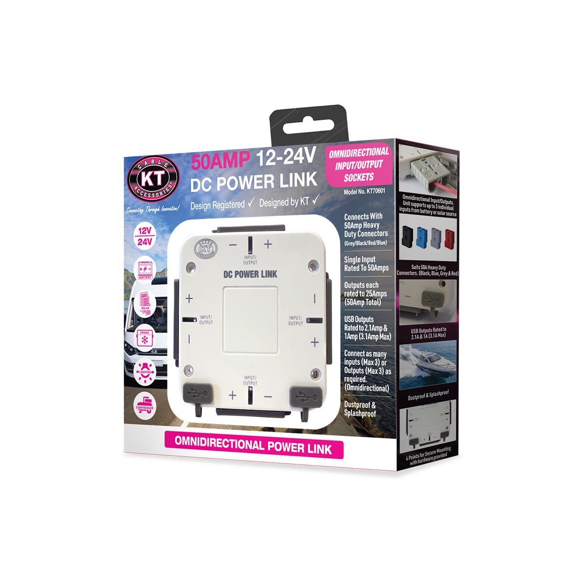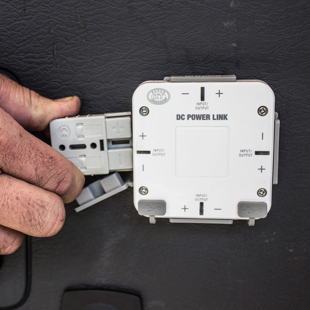An omni-directional, 50 amp power source suitable for 12V/24V applications. The DC Power Link is a unique product and design within the marketplace, designed to make powering your off-road 4×4 adventures, camping trips, and caravanning trips easier!