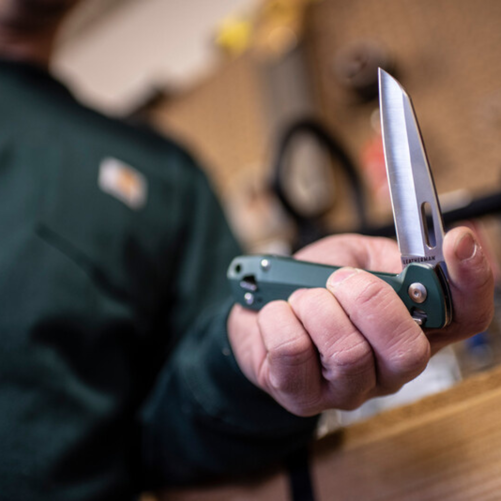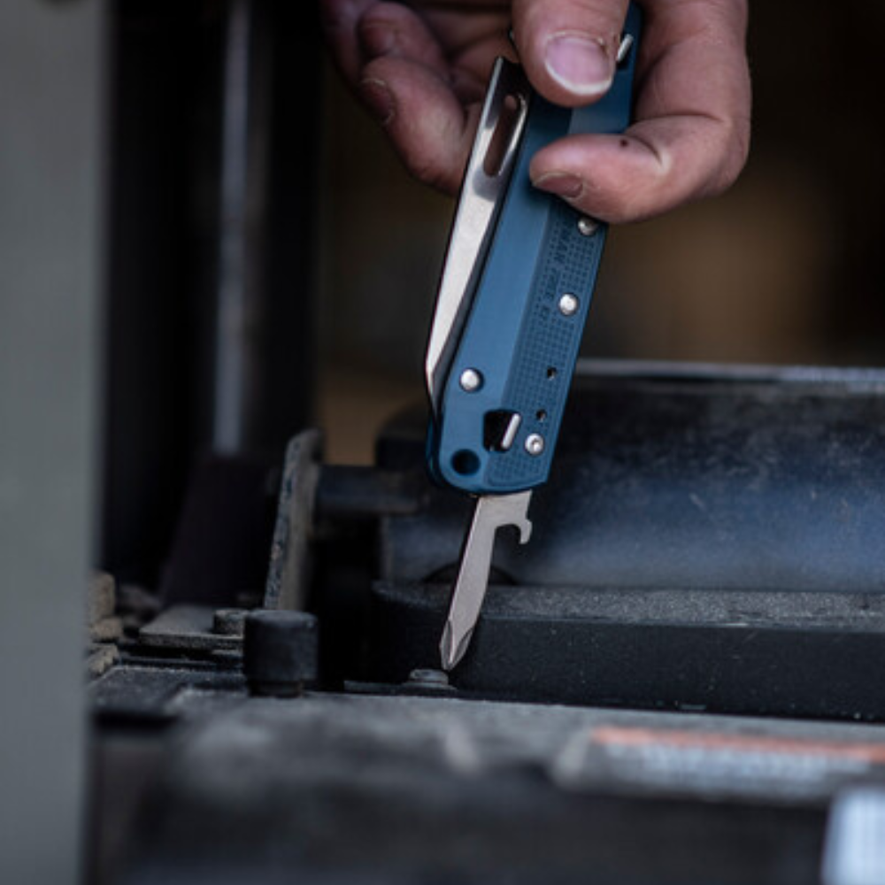 Leatherman Free places every gizmo on the outside of the tool, letting you access everything with one hand. Locking and unlocking is safe and secure thanks to the newly designed cam locks. Leatherman Free lets you keep your eye on the task, not the tool.