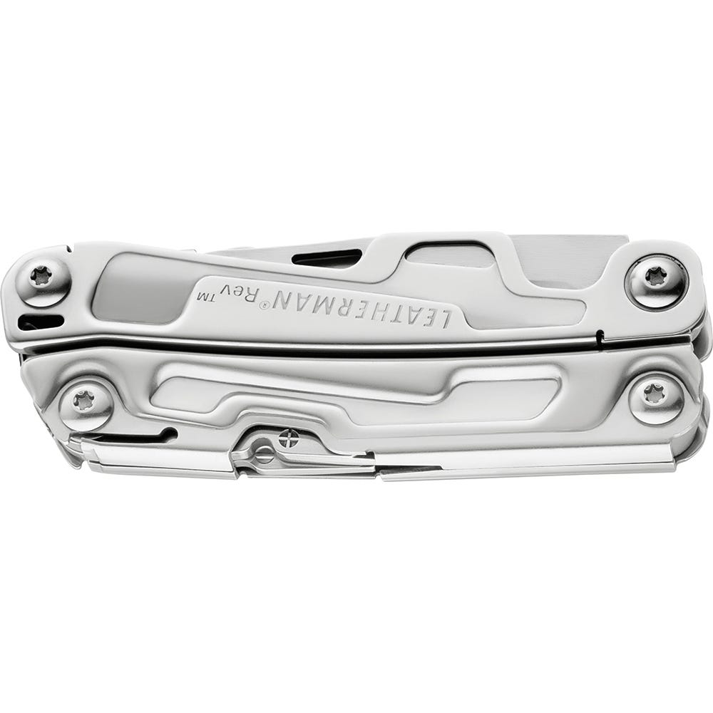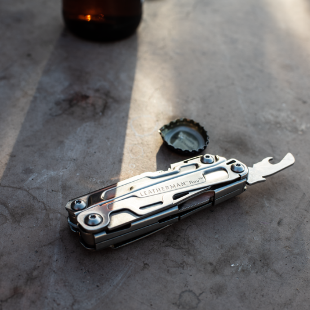 Introducing the Leatherman Rev. This all-new multi-tool allows you to grab a toolbox full of functionality and keep it at your fingertips, no matter where you might be: under the hood, at the campground, finishing honey-do projects around the house or cracking open a cold one at the tailgate. The Rev features 13 soon-to-be-indispensable tools, an outside accessible 420HC blade and a replaceable pocket clip for easy carry, and as always is backed by the Leatherman 25-year warranty.