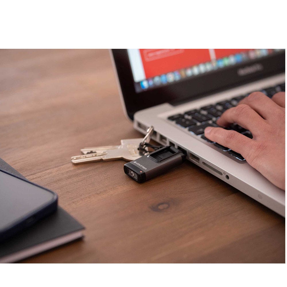 The K4R with 4GB USB is a rechargeable keychain light with up to 120 lumens of light output, making it significantly brighter than most smartphone torch functions. No more messing with annoying cables as the light can be conveniently charged using the integrated fold-out USB-A interface. This new model even includes 4GB of storage, so you can never be without a USB in times of need. With its compacted brushed aluminum housing, the K4R combines a high-quality look and feel, making it an elegant and practical accessory for your key ring.