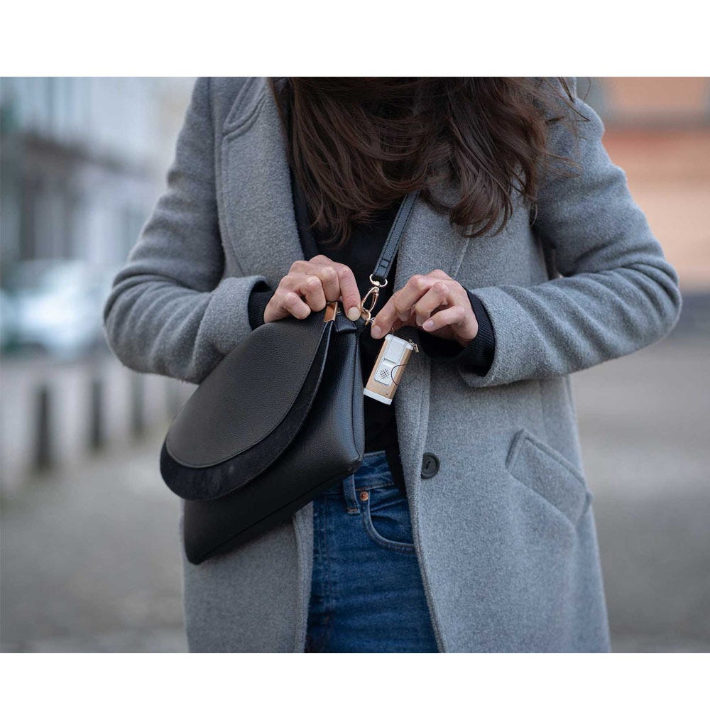 The compact K6R Safety keychain light has a quick and easily accessible shrill alarm signal that can deter an attacker or serves as a loud call for help. The up to 400 lumen bright light safely illuminates the surroundings, making the rechargeable K6R Safety an indispensable accessory for every handbag or jacket pocket.