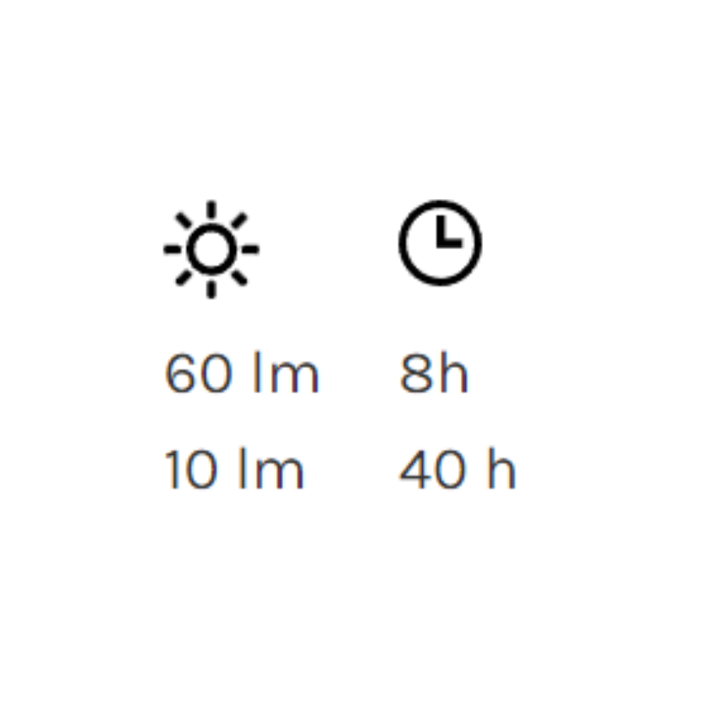 | Luminosity | MAX 60 lm - MIN 10 lm |