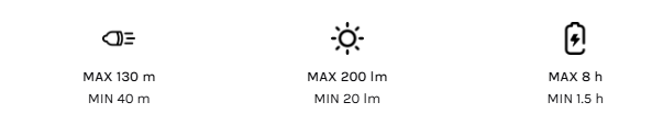 - Rechargeable key flashlight with focus function (Advanced Focus System) and three brightness levels