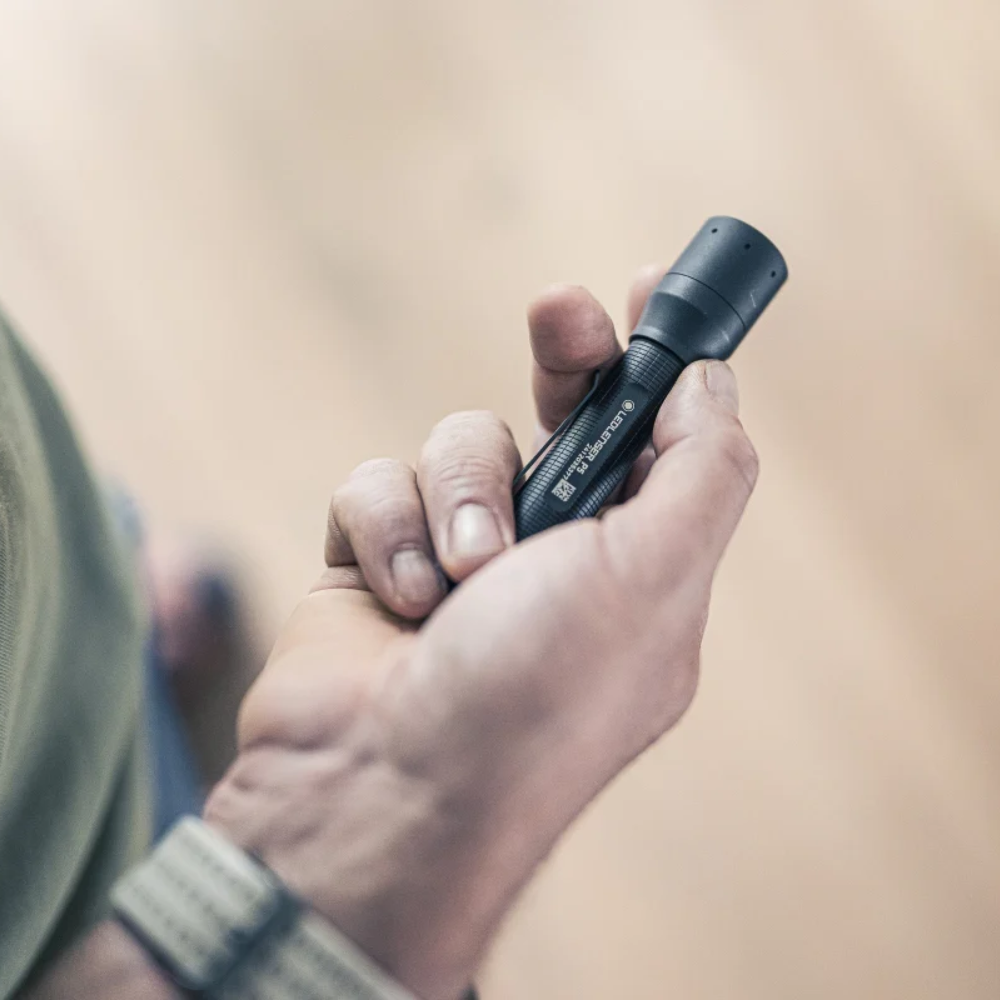 The P5 operates with an AA alkaline battery, making sure it is always ready to use. You can easily attach it to your clothes with the handy clip and operate it via End Cap Switch — straightforward and easy to use even with gloves.