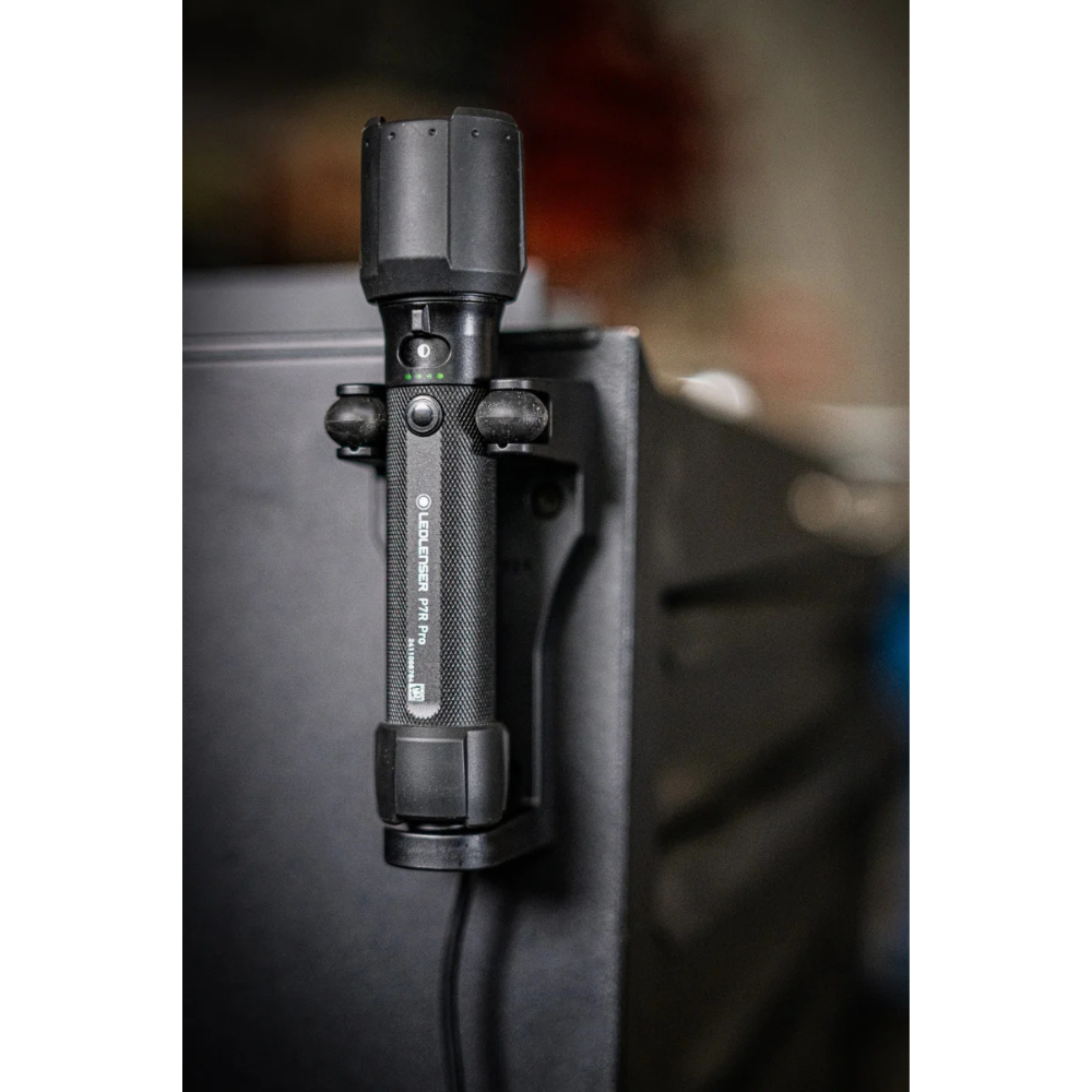 Designed to work as hard as you do, the P7R Pro features a Mode Select Ring for quick access to light functions, the transport lock and the USB-C charging port—even when wearing gloves. Removable protective bumpers and high water and dust resistance make it suitable for demanding environments while helping protect surrounding surfaces. All aluminium components are made from 75% recycled material, offering durability without compromise. Charge it via USB-C on site or set up the charging station in your vehicle so it’s always ready to go.