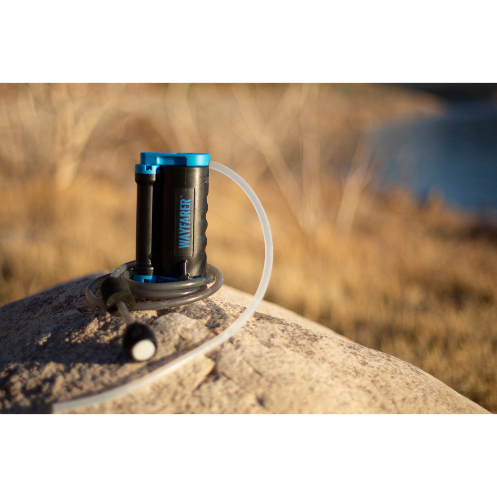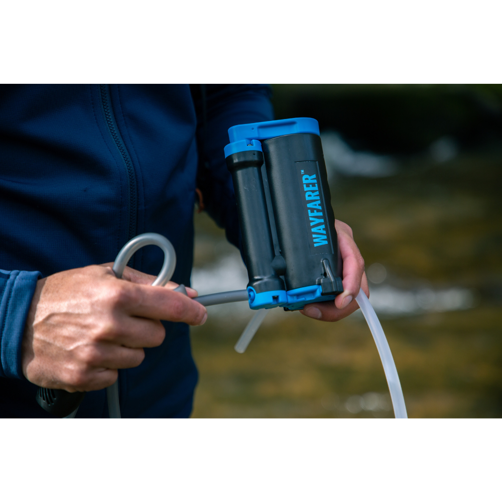 The LifeSaver Wayfarer is a small and light portable water purifier, ideal for hikers, backpackers, survivalists and all outdoor enthusiasts who need safe drinking water and want to travel light. The Wayfarer uses a scavenger in hose to pump water up and through the filter and out hose to deliver the purified water safely to your container – pump, fill and drink.