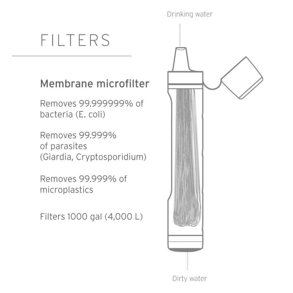 - Drink directly from lakes, rivers, and streams or fill a container to use your straw water filter on the go with protection against bacteria, parasites, microplastics, silt, sand, and cloudiness