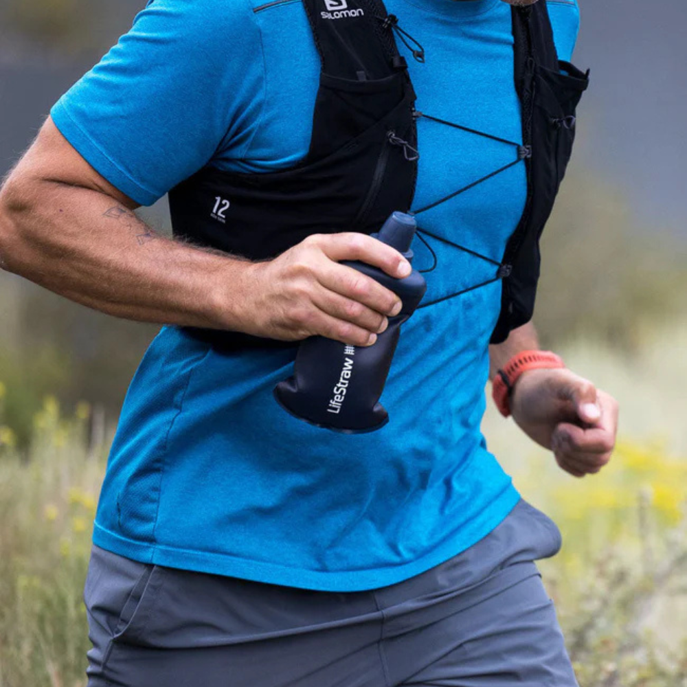 The LifeStraw Peak Series Collapsible Squeeze 650 mL Water Bottle with Filter is built for backcountry versatility where weight and space are critical. Ideal for trail running, through hiking and minimalist adventures, it protects against bacteria, parasites, microplastics, silt, sand and cloudiness. The ultra-compact filter design keeps your kit streamlined without compromising performance.
