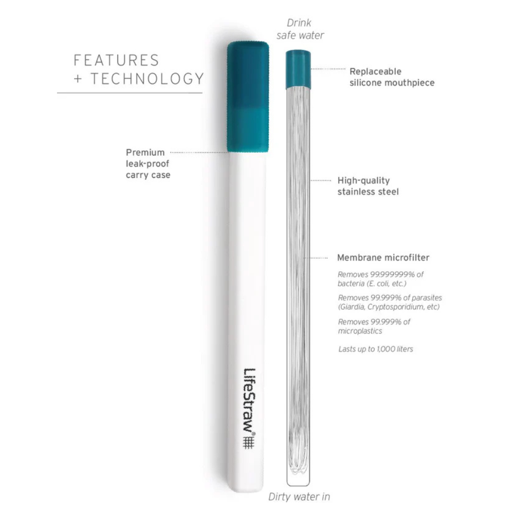 The LifeStraw Sip Steel Filter Straw with Carry Case is a compact, reusable solution for safer drinking on the go. It removes microplastics, bacteria and parasites, giving you confidence wherever you need access to water. Built from premium materials, it’s designed for durability while remaining slim and lightweight at under 3 ounces—easy to carry in any pack or travel kit.
