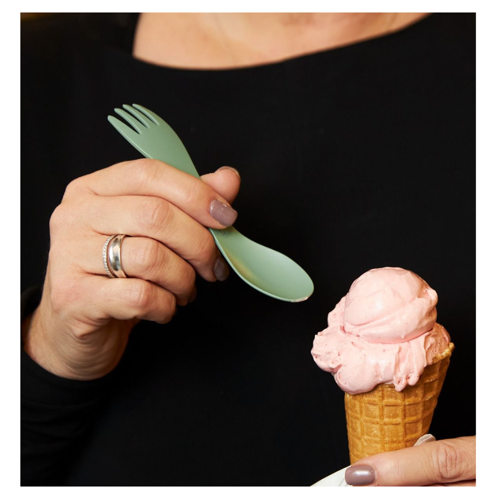 The Light My Fire Spork little has been designed with little adventurers and small hands in mind. This reusable Spork little is great for kids and is not only smaller but also thicker and rounder for ease of use and safety. The serrated edge of the fork has been removed to protect small mouths. Nevertheless the Spork remains versatile, tough and compact enough for everything from rugged trips into the wild, to slightly less rugged trips dishing out baby food at a city café. It’s great for lunch boxes, day trips, home snacks and meals on the go. Biobased plastics, 100% BPA-free that is both microwave and dishwasher safe.