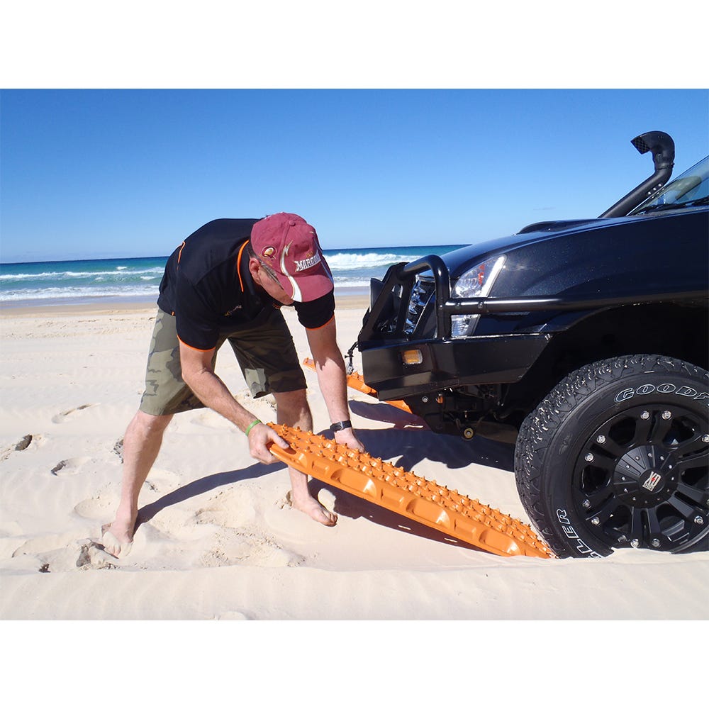 Maxtrax is the lightweight, easy-to-use vehicle recovery and extraction device that's easily carried by almost anything with four-wheels, ensuring an easy way out if your vehicle becomes stuck! The Maxtrax takes the drama out of getting stuck. The aggressive large cleats on Maxtrax sink their teeth into the tyre tread and the terrain under your 4WD vehicle to prevent it from slipping back into mud, snow, or sand and make vehicle recovery quick and easy.