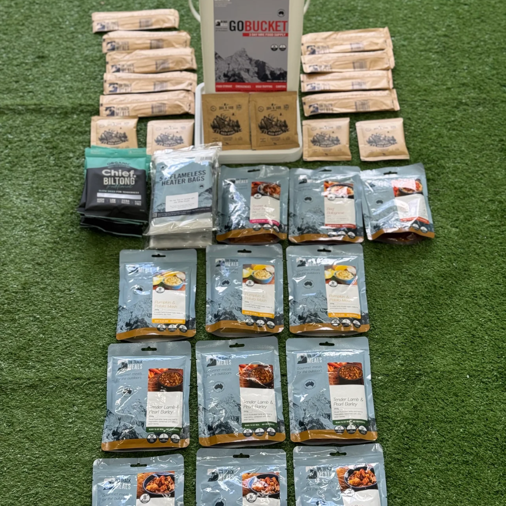 The GoBucket is a complete, ready-to-go 3-day food supply kit designed to meet your needs in emergencies, outdoor adventures, road trips, and camping. With a variety of gourmet MREs and essential extras, this bucket ensures you're well-fed and prepared wherever life takes you.