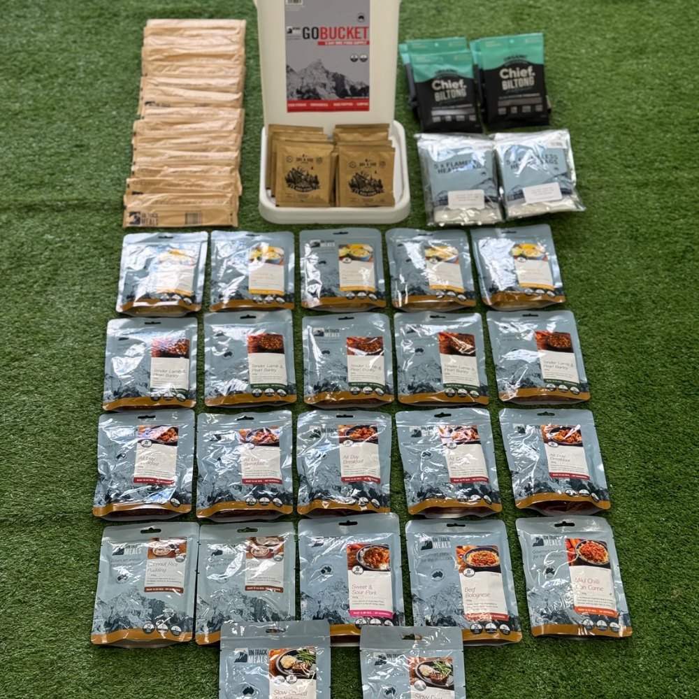 The GoBucket is a complete, ready-to-go 5-day food supply kit designed to meet your needs in emergencies, outdoor adventures, road trips, and camping. With a variety of gourmet MREs and essential extras, this bucket ensures you're well-fed and prepared wherever life takes you.