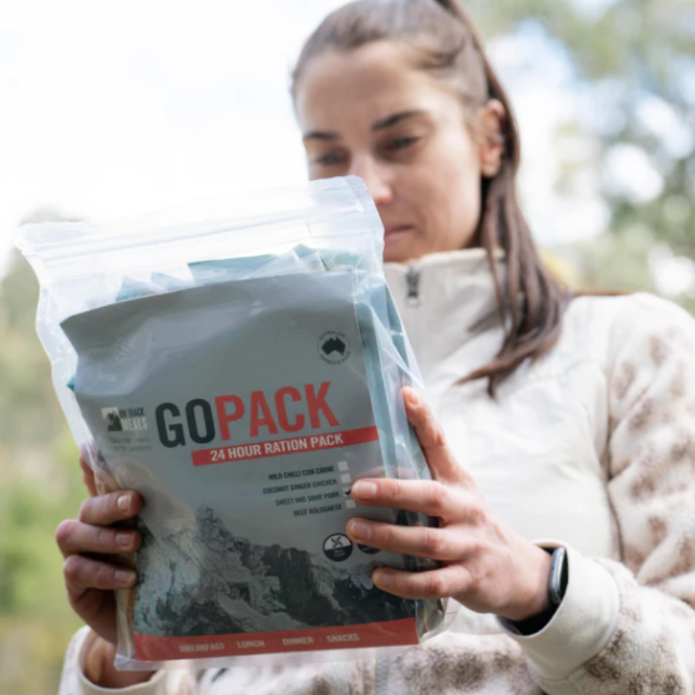 Designed for convenience, the Go Pack includes everything needed for a full day of nourishment, from breakfast to dinner, along with snacks and hydration essentials. It also comes with flameless heater bags, allowing for easy heating without the need for fire or cooking equipment.
