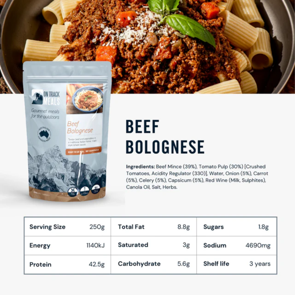 On Track Meals don't come with sides. For the Beef Bolognese we suggest a side of pasta.