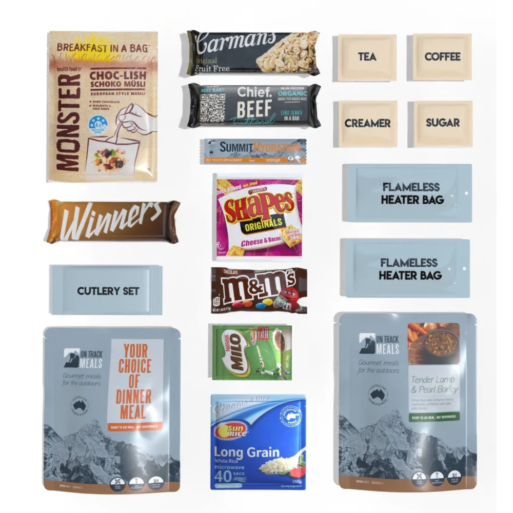 On Track Meals is Australia's leading supplier of shelf stable nutrition. Their ready-to-eat meals are trusted by adventurers and emergency service providers all over Australia. In this Go Pack, you'll find a selection of On Track Meal's products, as well as a range of their favourite snacks, to keep you fuelled for your next adventure.