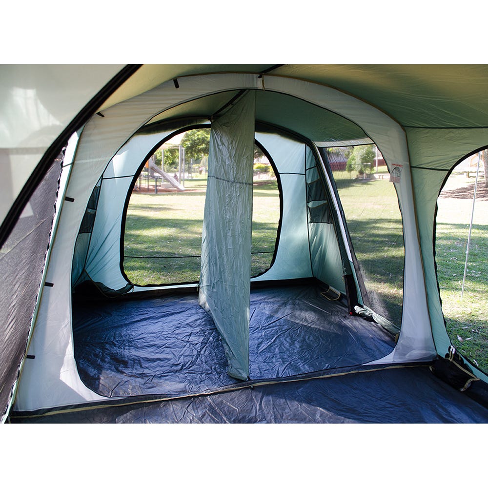 There are sewn-in dividing walls to separate the space which can be tucked away neatly into a side pocket if you wish to open it all up! The three pole awning provides a great outdoor area for relaxing or cooking, there's also the optional Outdoor Connection Awning Side Wall (sold separately) available to add extra privacy or to act as a wind break. The Aria Elite 3 is perfect for all camping adventures and packs up into the included EziPak 'drop-in' flap over carrry bag for easy storage and transportation! Now covered by Outdoor Connection's new 5 year warranty!