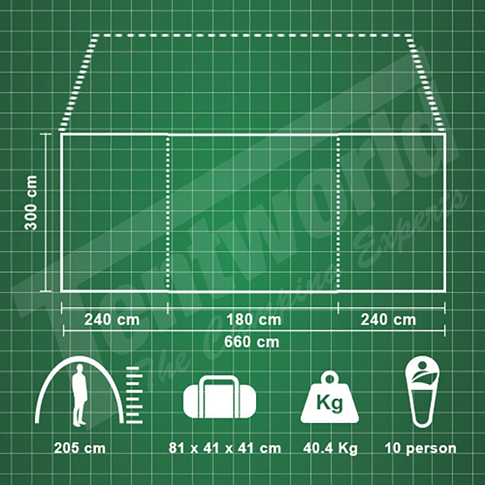 The new Outdoor Connection Aria Elite 3 Air Pole Tent has a quick to erect design due to the instant up poles! This unit will set up in about 15 minutes and one the outer fly is on, it can remain attached for future use. This spacious 3 room tent has straight side walls in order to give plenty of 'walk around' space and lots of headroom, and there's a fully sewn-in dividing wall to separate the space. Each end bedroom has large side windows with screens to provide great cross-flow ventilated for coolness and comfort! There's a large Omega screen door at end of the tent to provide added comfort.