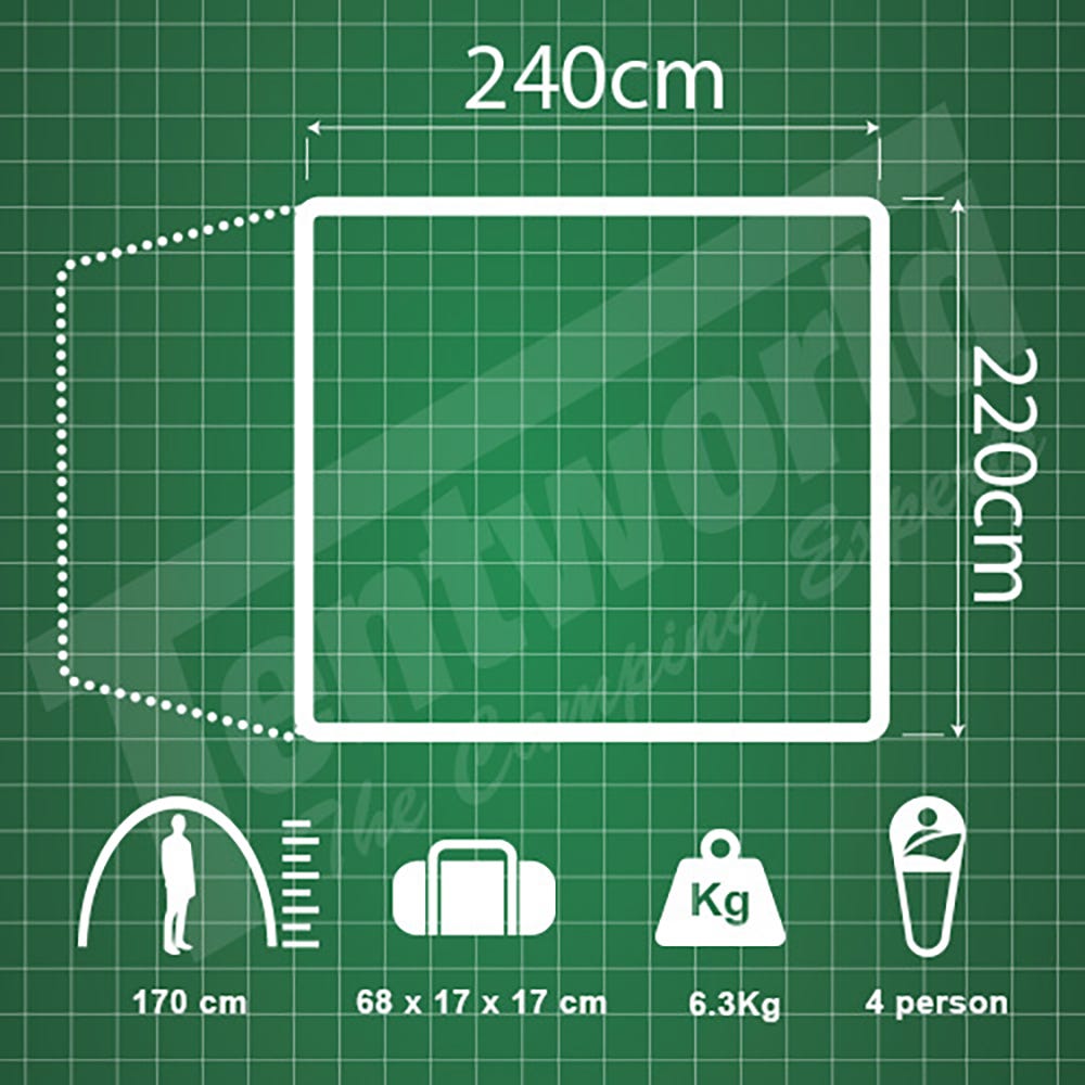 Inner Tent Fabric: 68D Breathable polyester to minimise condensation collection inside the tent living space.