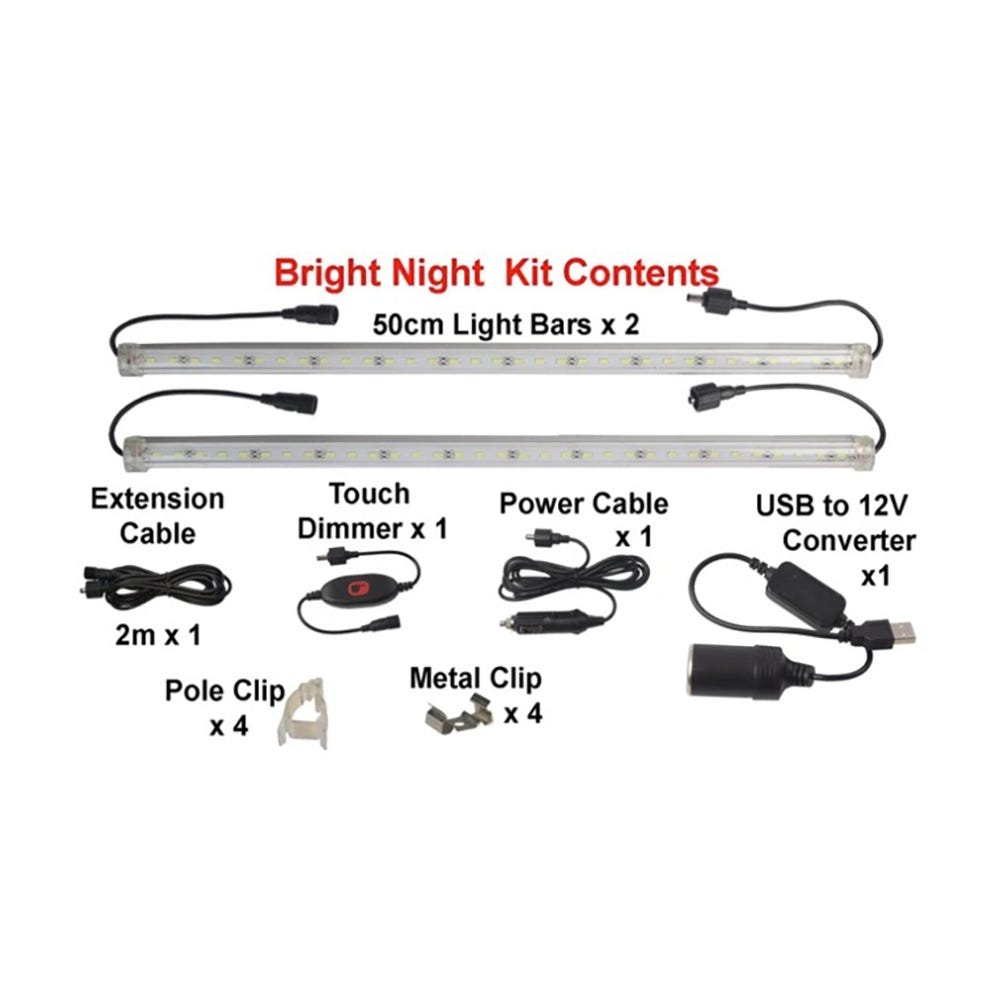 The Outdoor Connection BrightNight Light Bar Kit is a simple solution to lighting your campsite. Ready to plug into a 12V power supply or use the 5V USB to 12V converter and run off a power bank.