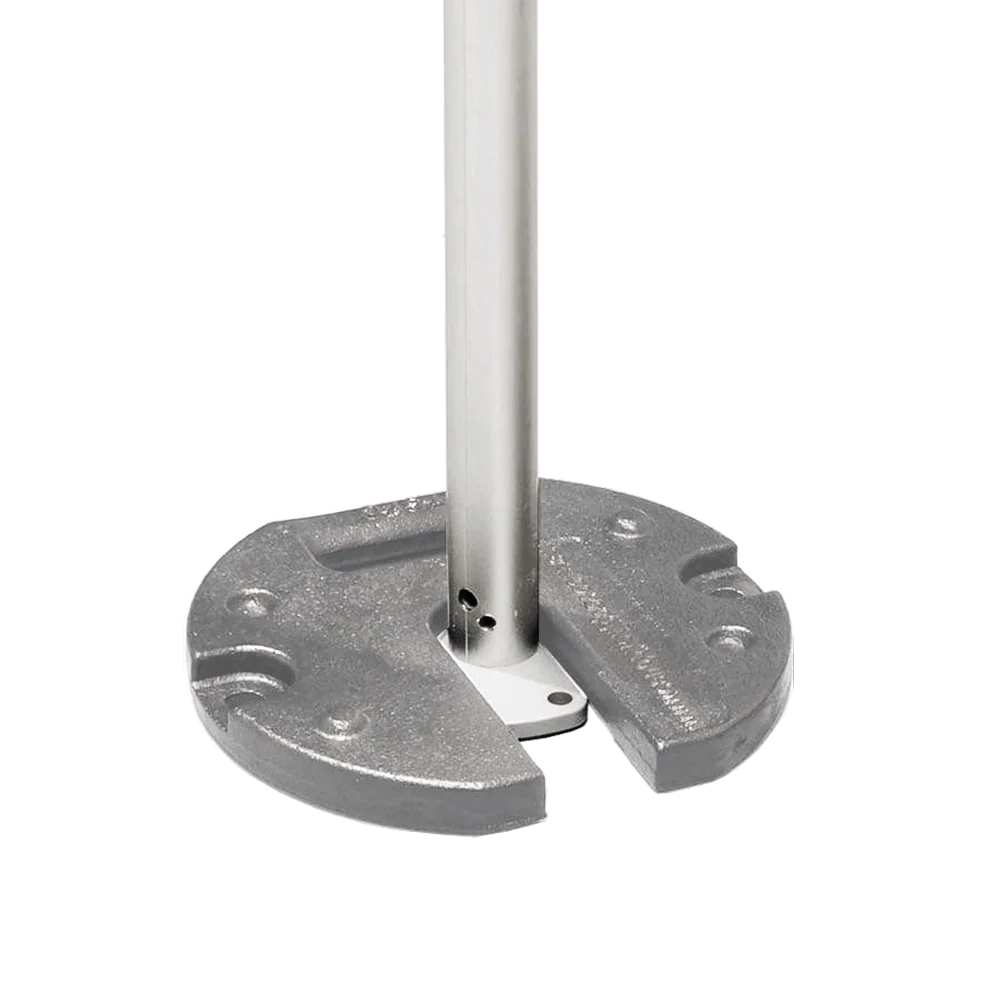 The Outdoor Connection 15kg Cast Iron Weights are the ultimate heavyweight insurance for your setup, trading messy sandbags and flimsy water jugs for sleek, indestructible stability. Their genius lies in their dual-function geometry: use the 'C' shape to hug a single leg for rock-solid individual anchoring.