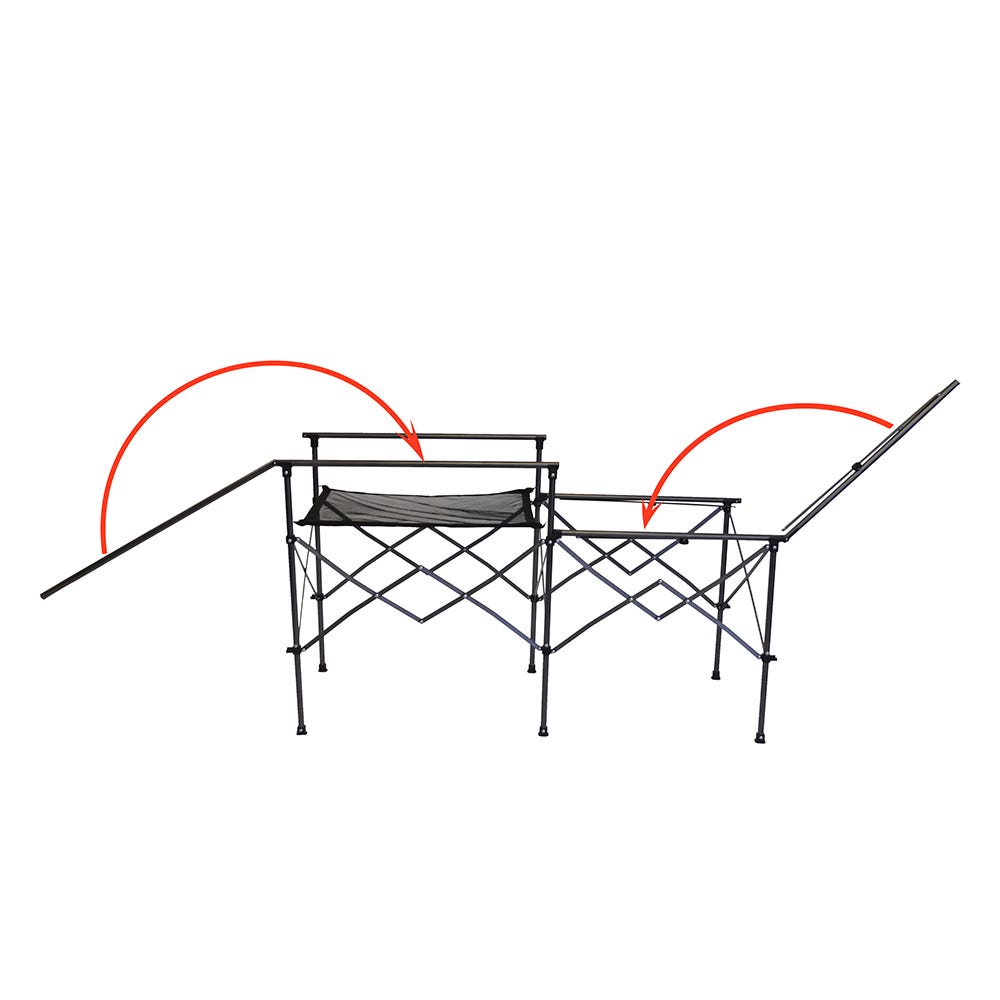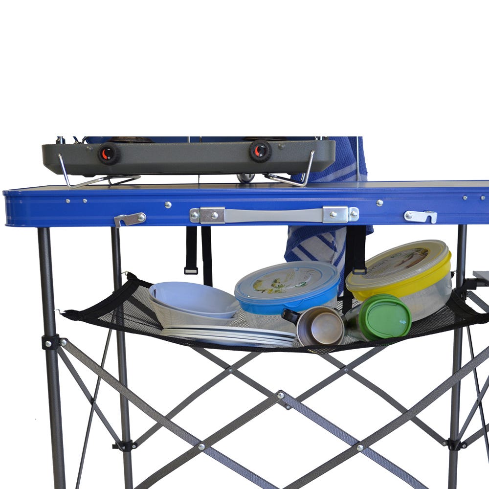 This lightweight, convenient Compact Camp Kitchen has ample space for food preparation, cooking, and washing up.