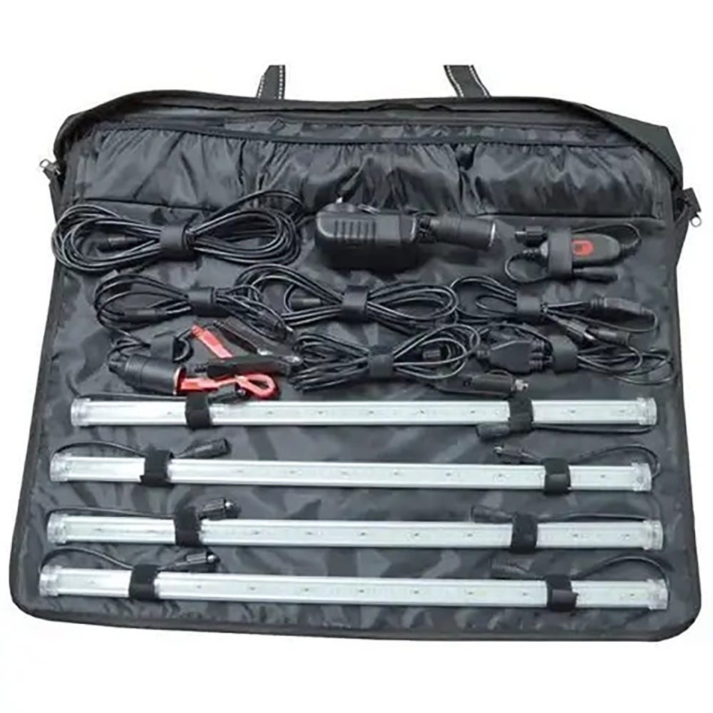 The Outdoor Connection Power Strip Light Bar Kit is the 12V solution to all of your lighting needs. Whether you need it for a tent, gazebo or even just to hang off a tree you can be sure these lights will suit your purpose. These powerful lights are 50cm long and put out an incredible 680 lumens each ensuring you have plenty of light. All of the Light Bars, Cable Connectors and the Dimmer On/Off are IP67 Rated Waterproof.