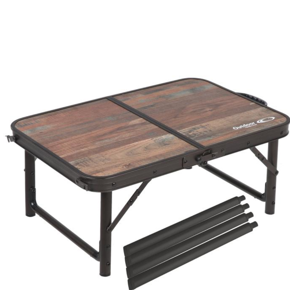 The Rustic Compact Side Table makes an ideal lightweight travel companion for the caravaner, camper of picnicker. A lightweight choice of either of two different heights according to your preference and whether you are sitting on a picnic rug or in your Outdoor Connection chair relaxing. With an extension piece for legs, the table can be used at a height of 32 cms or 58 cms.