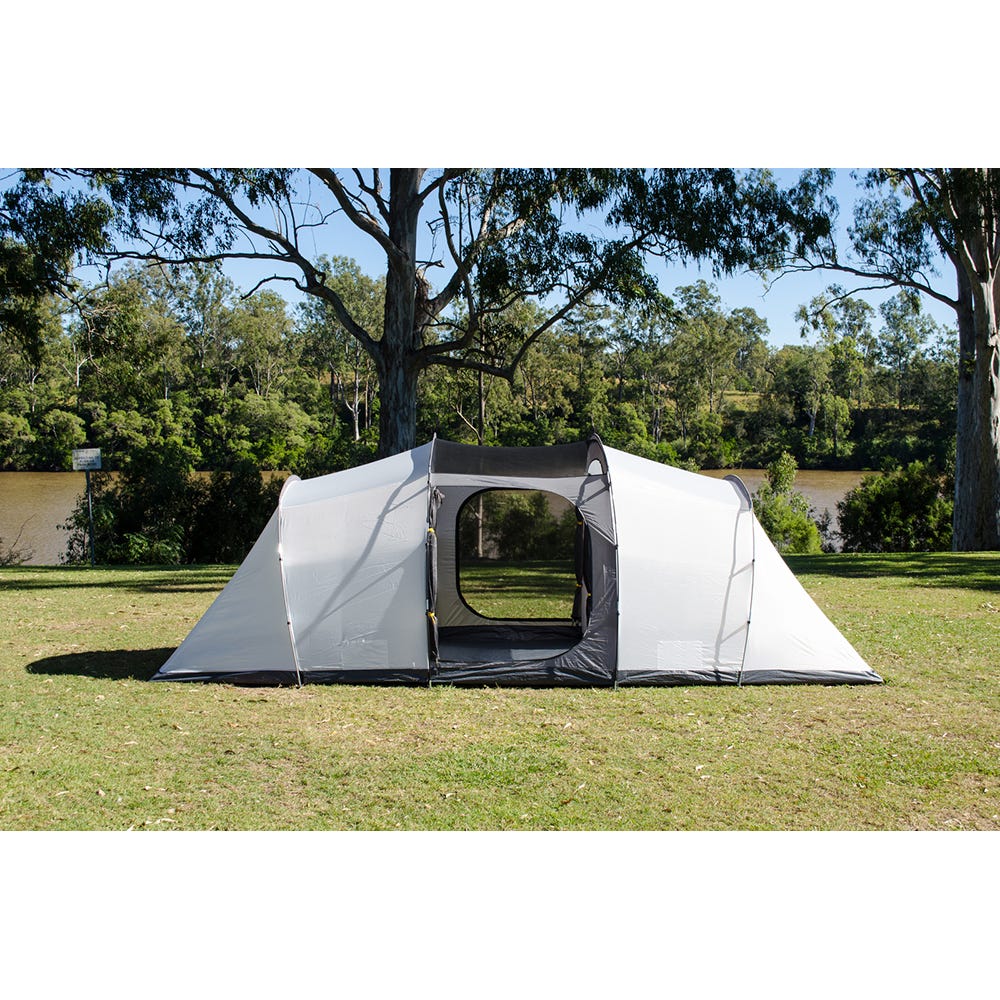 For the family with a strict budget, the Outdoor Connection Somerset 3R Dome Tent is the perfect tent. Outdoor Connection is known for its simplicity of design while maintaining their high standards of quality. The Somerset 3R Dome Tent is elegant and well manufactured, featuring a spacious three-room design ideal for a family or small group. Each room is completely screened with "Durafine No-See-Um Mesh", which is durable and incredibly fine, ensuring that sandflies aren't able to drop in on your evening's sleeping patterns. Inside the Somerset Dome, the side bedrooms include large windows on each end, perfect for maintaining ample ventilation and improving internal light throughout the day. The middle living space is similar, fully screened with doors opening either side. As an added benefit, each of the rooms is separated by an internal privacy screen and large D-Doors.
