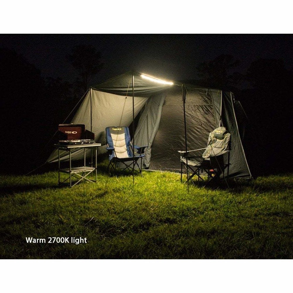 The unique LED light can be varied from a warm 2700K light to a cool 6000K light. With this range of light, setting the right mood for your campsite will be a breeze.