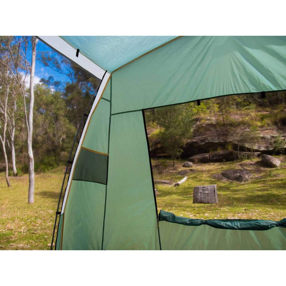The Outdoor Connection Weekender 1R Dome Tent is perfect for weekend adventures. The Weekender is a large, single-room tent ideal to take on your next trip! The hornet pole system makes the Weekender incredibly easy to set up. The pole structure provides great strength and stability whilst creating excellent headroom and internal space so that you get plenty of storage along with adequate sleeping room! There's plenty of ventilation throughout the tent, with large doors and windows which also have internal covers for privacy. In conjunction with the large floor to ceiling inner windows, the Ventraflow panels allow a cross-flow of cool air down low where you sleep on those hot Australian summer nights.
