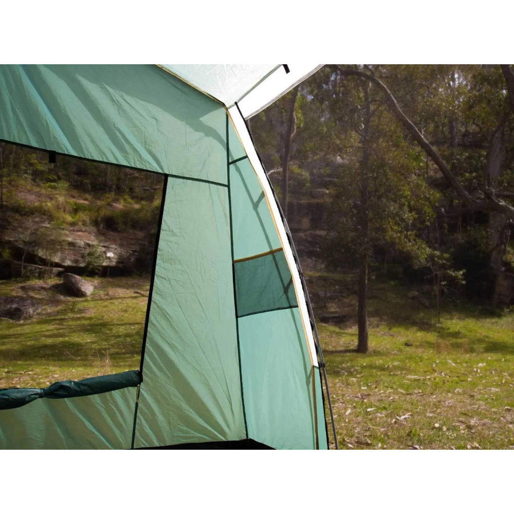 The front awning can be erected with 3 adjustable poles so that water does not pool in the rain. The rear now also features a fully gusseted window, rather than the rear door seen in previous models. The Weekender can be used with optional awning side walls (not included) to give privacy to the awning area, or create a proper all-weather awning area that's not found on other dome tents! The Weekender has superior strength, durability and excellent waterproofing. The treatment on the tent material, known as Outdoor Connection's unique UV-Protek treatment, provides maximum resistance to fabric degradation from the damaging effects of UV light, offering longer life to your camping home!