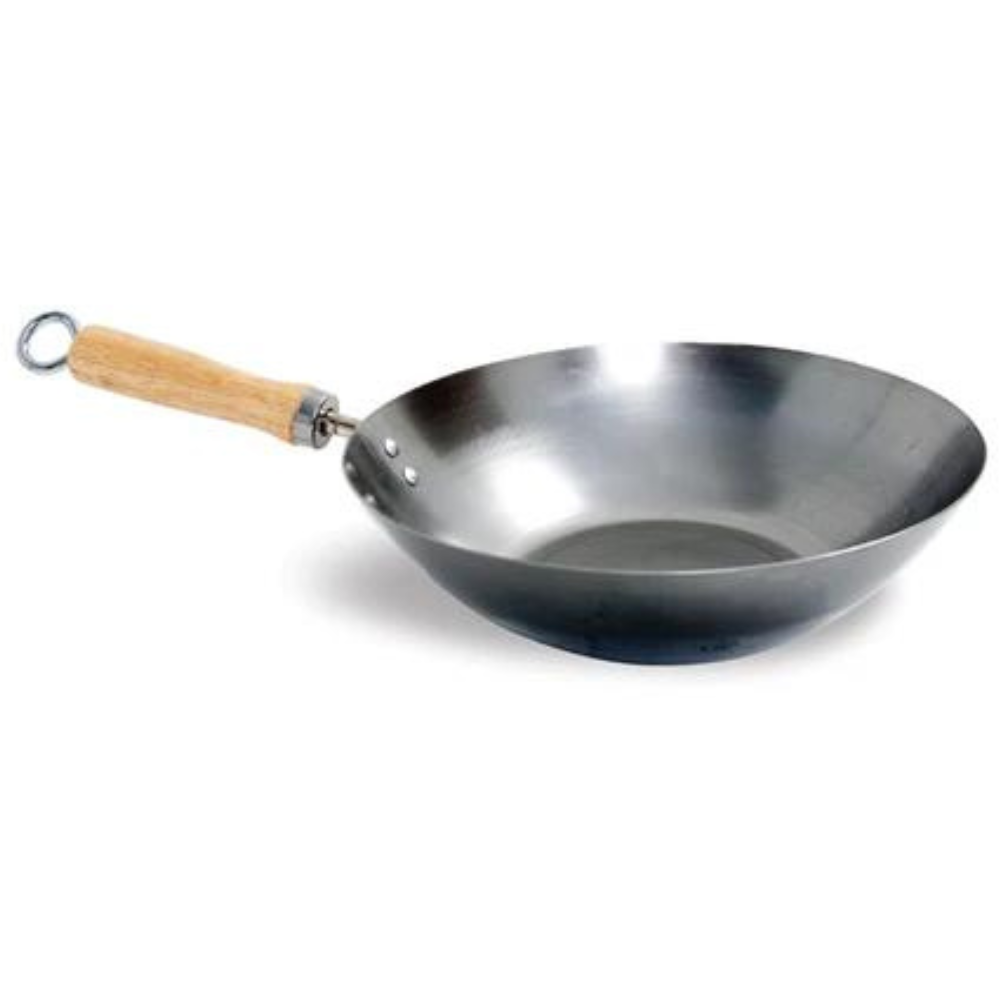 Use this carbon steel wok to create a range of Asian cuisine dishes over a wood fire or flip it over and use it to create an over the cooking plate for wood-fired pizzas.