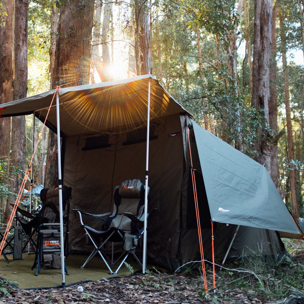 Introducing the updated version of the OZTENT RV Fly—an exceptional addition designed to maintain a cooler tent environment and significantly reduce condensation. While excelling in keeping the interior drier during wet weather, it's important to note that it isn't essential for waterproofing the tent.