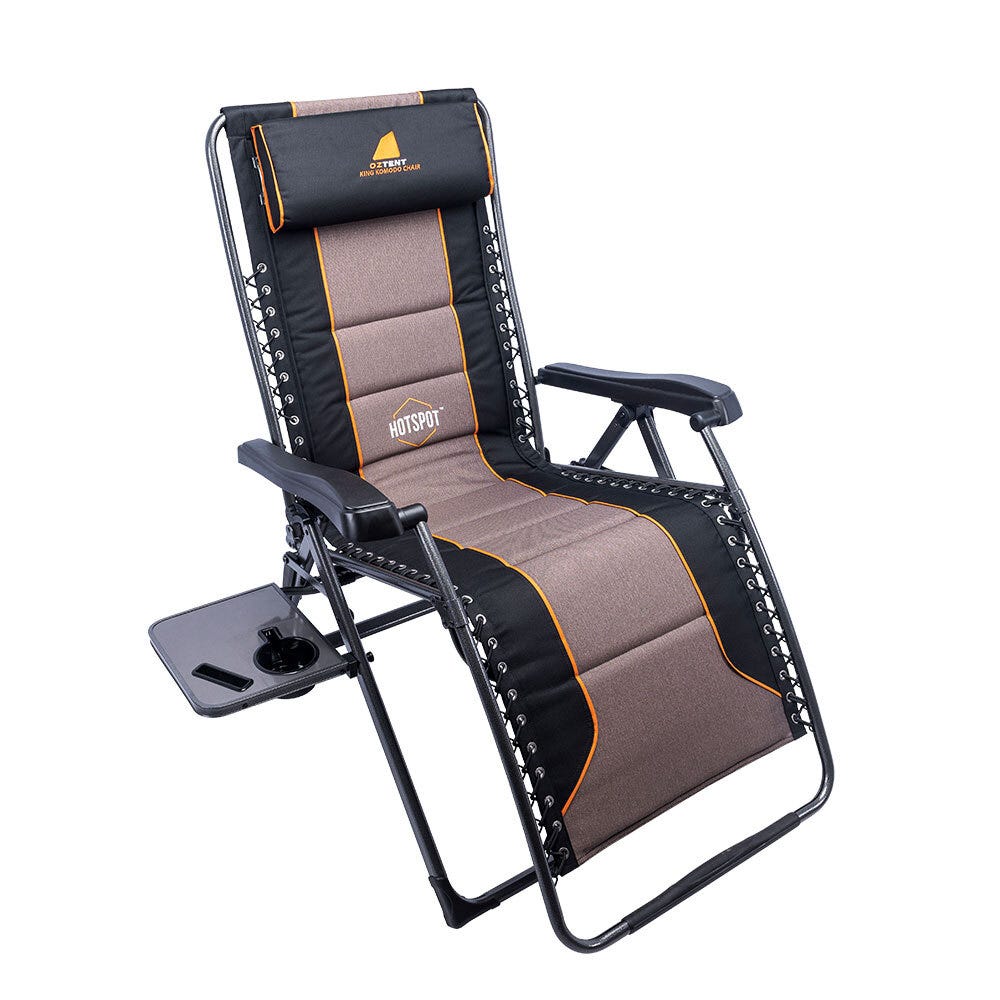 The OZTENT King Komodo HotSpotรขโยข Chair is the ultimate in luxury camp chairs for all seasons. It boasts OZTENTรขโฌโขs HotSpotรขโยข technology that allows an incredible passive heating experience for those cold days simply by slipping in your (included) HotSpotรขโยข pouch.