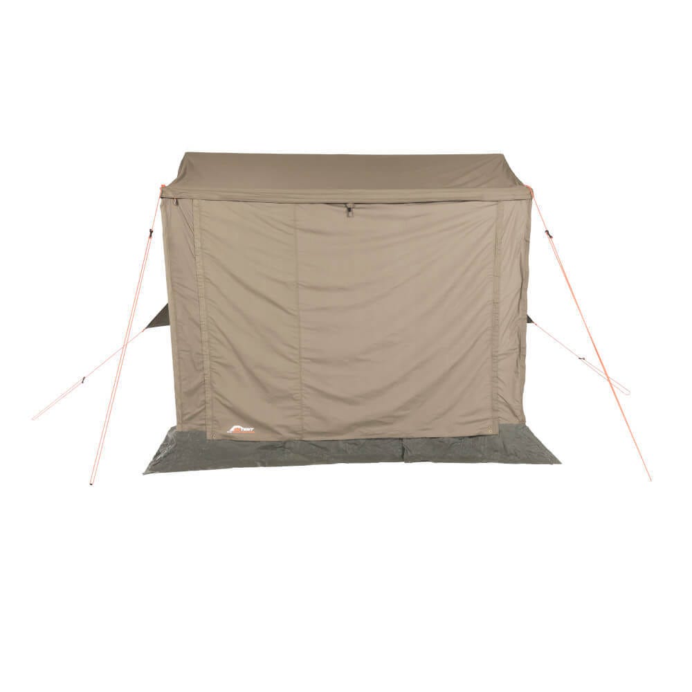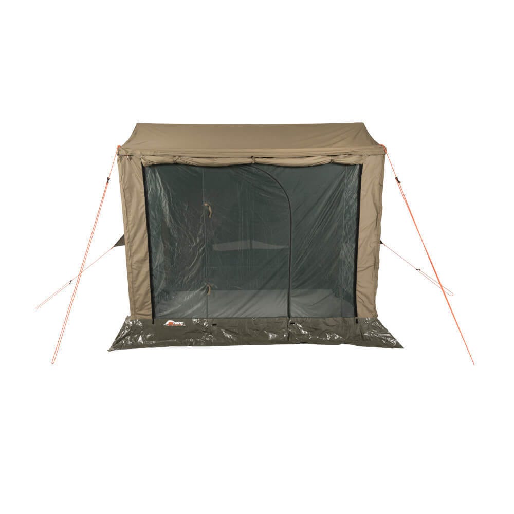 This panel has a large screened area with a zippered door made from superfine mesh, to keep the insects out and with the use of the RV Plus Side Panels makes for an extremely comfortable outdoor area. It also has a drop-down zippered canvas panel to protect your from the weather if it turns bad. This drop-down panel can also be used as an extra awning with the use of extra poles to extend your living space even further (poles not included).