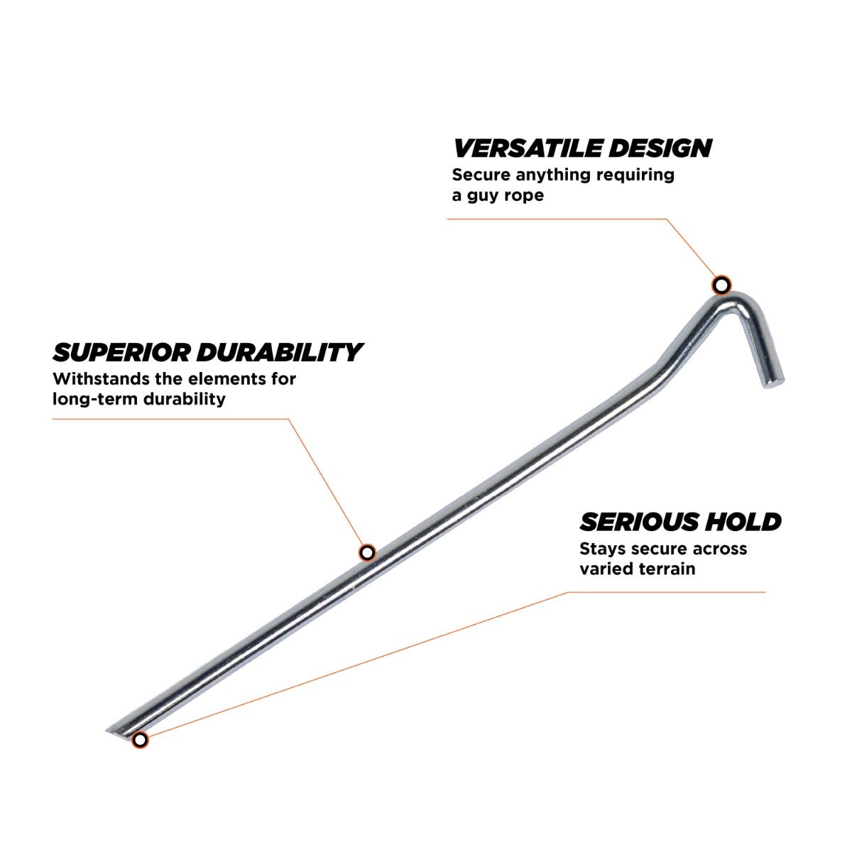 - 7.7mm Diameter & 250mm Length - Delivers superior grip and penetration into a variety of ground surfaces.