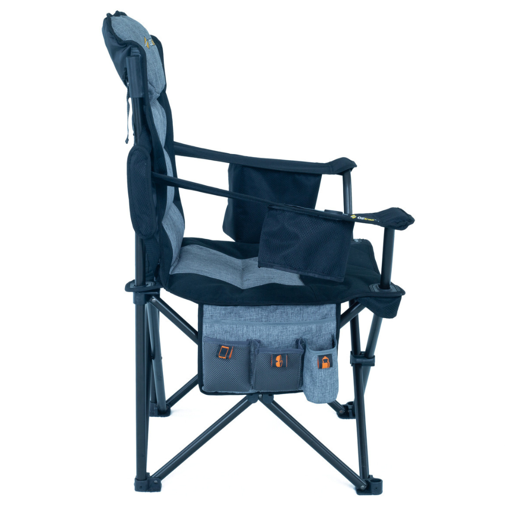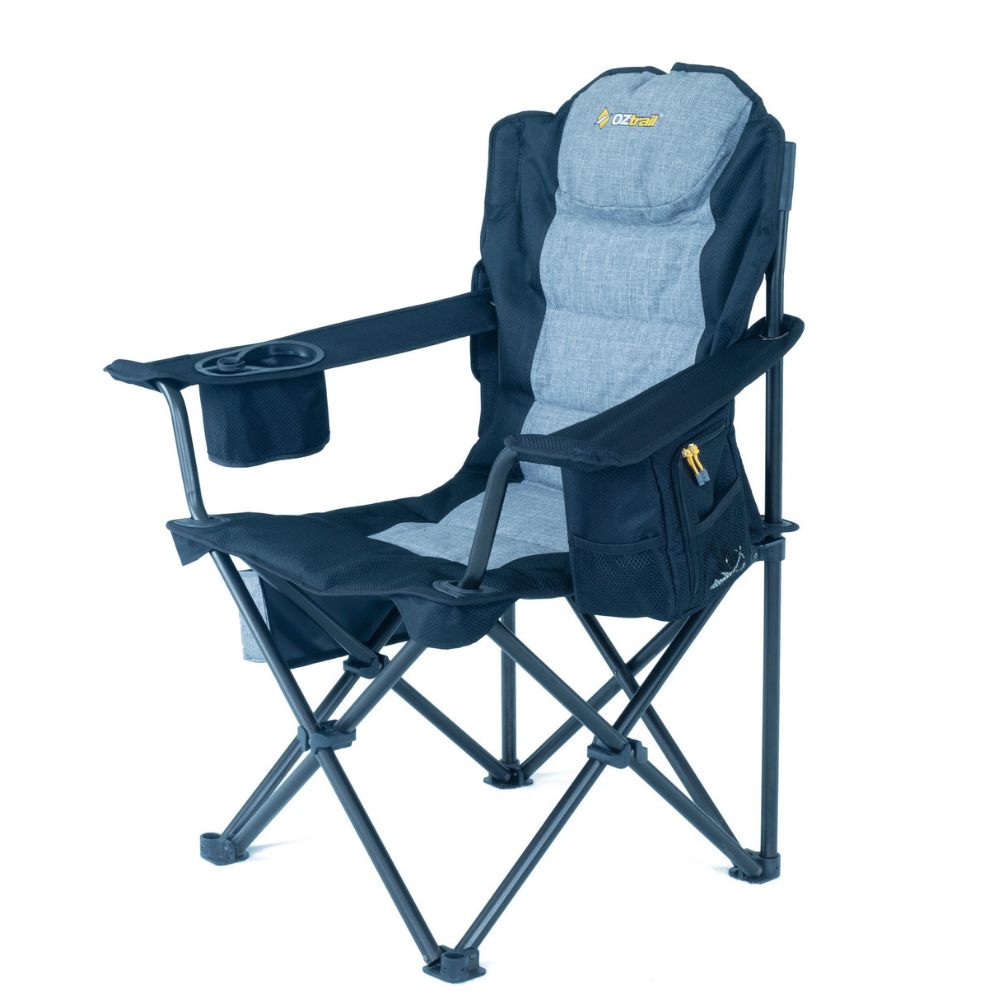 The OZtrail Big Boy Chair is the secret key to comfort while on your camping holiday, outdoor adventure, around the fire or at your kids sporting event. This Chair has a multi-use storage pocket that can be used to store devices and personal items. This chair is also strong, the massive weight capacity of 220kg is due to the superior strength 22mm high tensile steel frame. Made from hard wearing, durable two-tone polyester double layer padded construction, this chair is sure to last.
