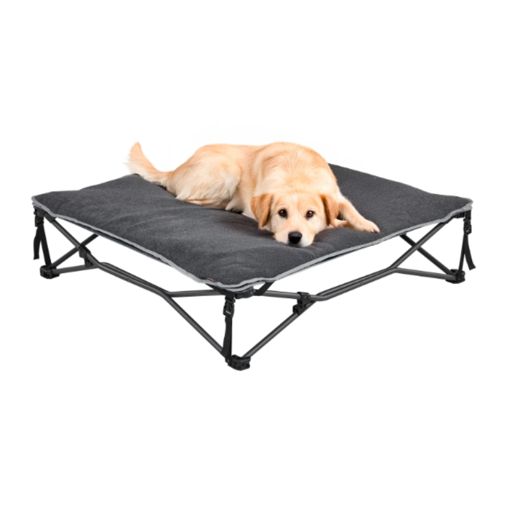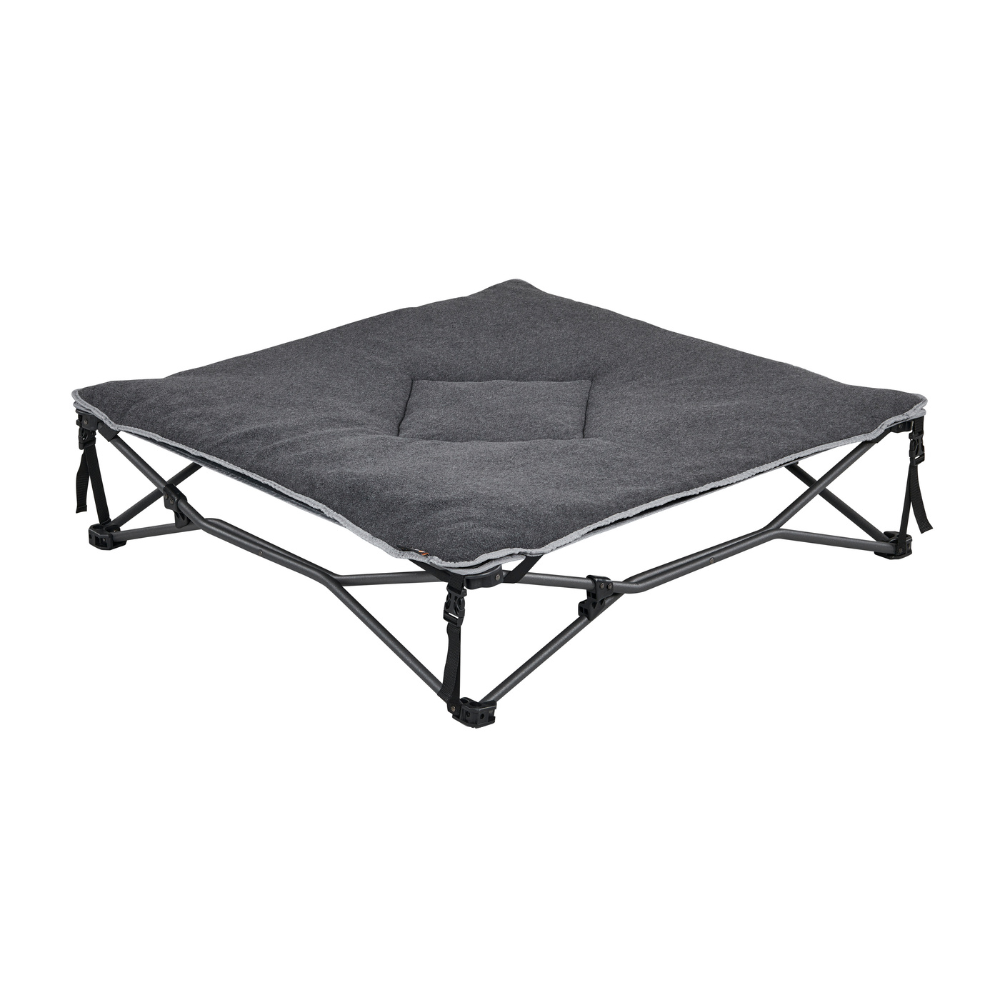 - Quick-fold design keeps your dog off the ground when camping