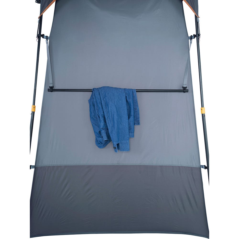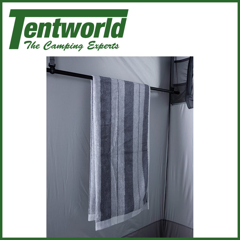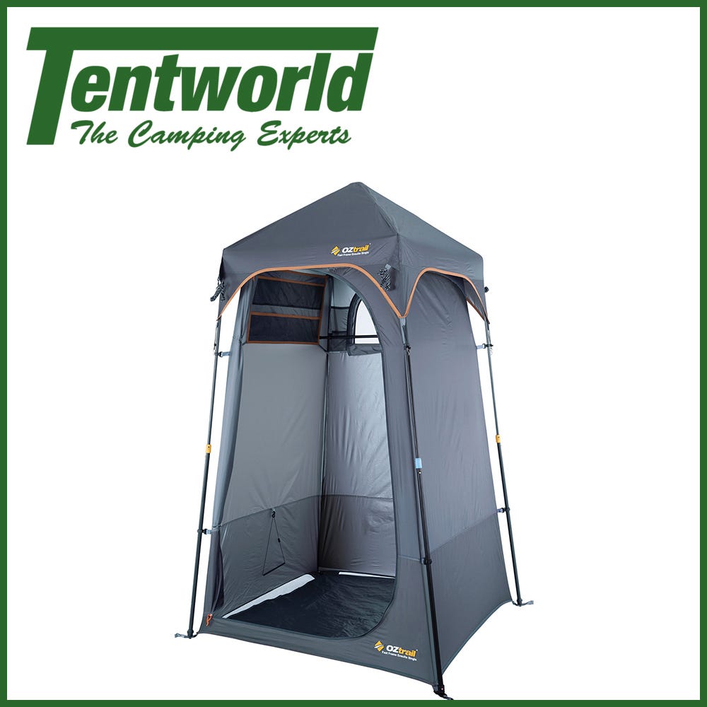 The OZtrail Fast Frame Ensuite - Single is a fast pitching and stable ensuite tent due to the fast frame system that not only allows a quick set up, but it also provides greater strength and improved water shedding! The heavy-duty 75D fabric is durable and has silver coated inner walls for total privacy, along with vented roof ventilation and a removable fly panel! The removable floor has mesh drains for ease and versatility, and there's even an adjustable multi-position toilet paper holder! There's plenty of storage with an internal multi-pocket toiletry organiser, and the adjustable towel rail can be used inside or outside the ensuite. The reinforced central hanging hook supports heavy showers and there are internal access ports for shower hoses or power cords for ease of use!