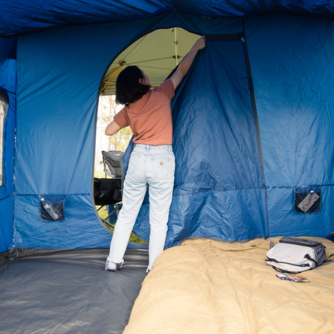 Care Instructions: Clean with a damp cloth and mild soap. Do not use harsh chemicals. Ensure the tent is completely dry before packing to prevent mold and mildew. Store in a cool, dry place. Avoid excessive heat and humidity. Inspect regularly for wear and tear, and replace damaged components as needed.