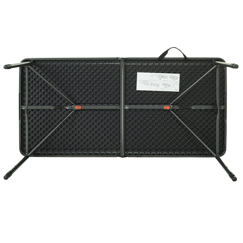 This 120cm foldable table is ideal for camping and picnics for the family! Its corrosion-resistant steel frame ensures your table has exceptional durability and will last! The thick top is easy to wipe clean and hard to stain, meaning your table will stay looking clean and new. The horizontal and angled stabiliser frames ensure added stability so you don't have to fret about tipping or toppling. The height can also be adjustable with three height settings. This table also includes an easy to use carry handle for complete convenience.