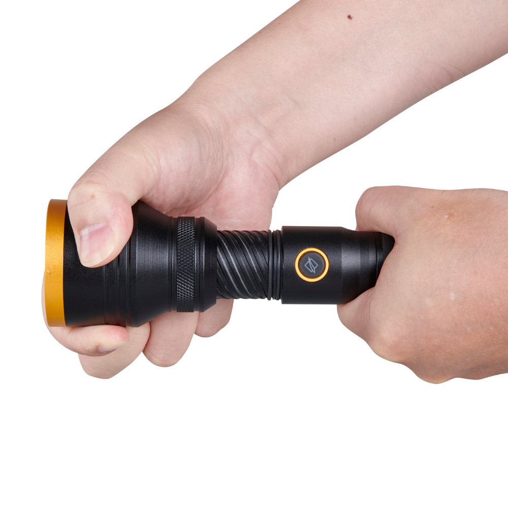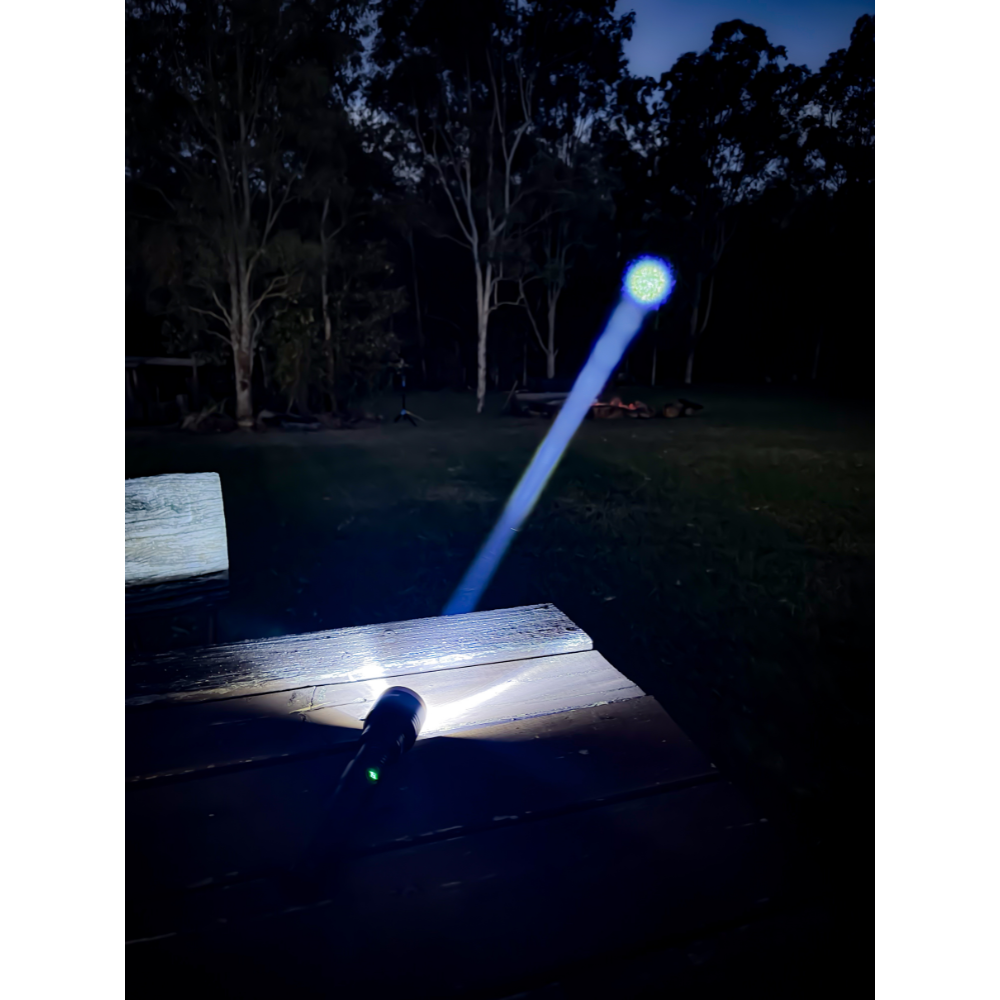 The Lumos LongBeam 1000M flashlight is built for those who demand serious power in a compact, spotlight-style design. With up to 1200 lumens of brightness and a twist-zoom focusing head, you can easily switch from a wide flood beam to a narrow spotlight. On high mode, it delivers an incredible 1000-metre beam distance, making it perfect for outdoor adventures, search and rescue, or emergency use.