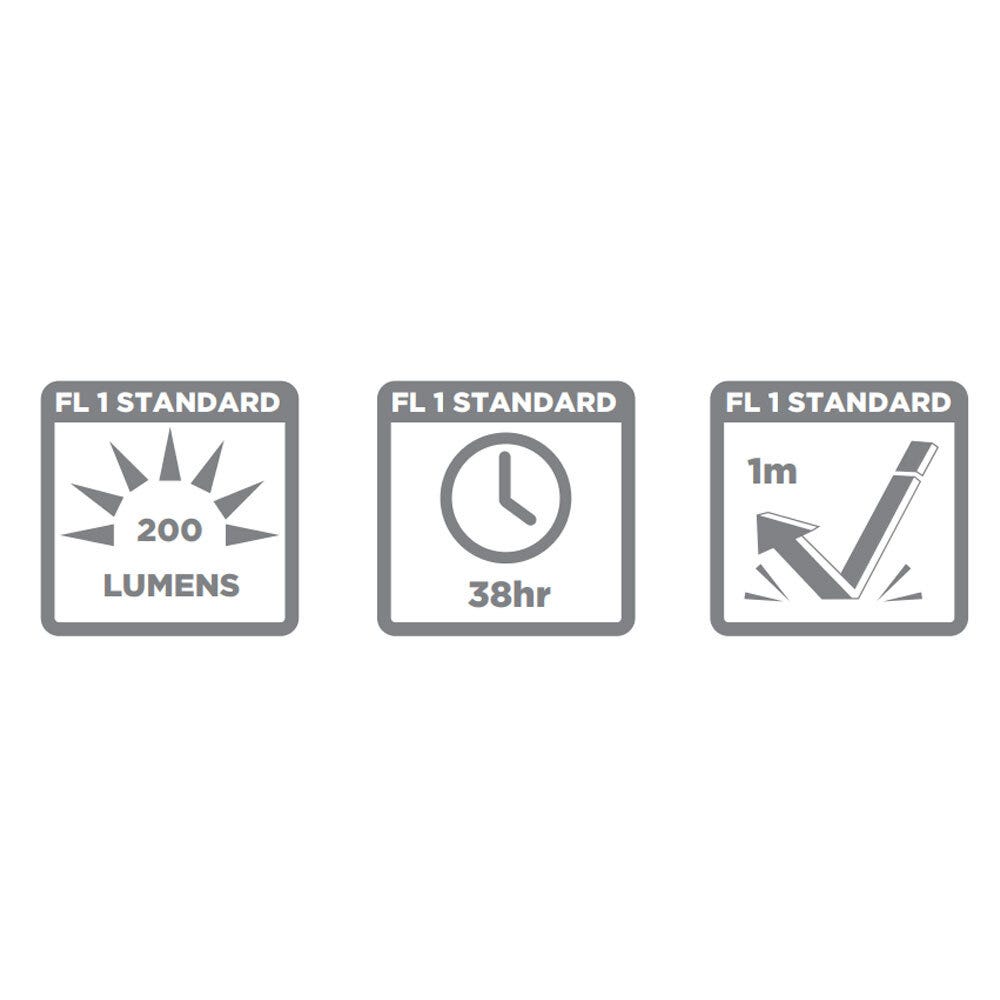 Lumens: 30 (low) / 120 (medium) / 200 (High)