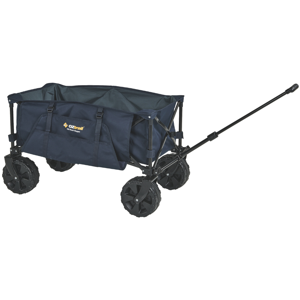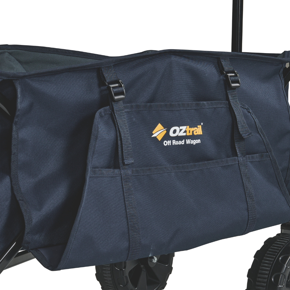 The Offroad Wagon is an essential companion for beach trips, camping, picnics, and sports, providing a durable and convenient solution for transporting all your gear. Designed with a powder-coated steel frame and a double-layer base, this wagon ensures long-lasting durability and strength, capable of handling up to 60KG. Its 600 Denier polyester fabric offers robust protection for your items, while the all-terrain 20cm diameter wheels allow for smooth movement across various surfaces, from sandy beaches to rocky trails. This wagon is built for practicality and ease of use, featuring a collapsible handle and folding frame that makes storage a breeze. The side sling and pocket are perfect for carrying longer items such as chairs, umbrellas, and pool noodles, making it versatile for different activities. Whether you're heading to a sports event, setting up a picnic, or embarking on a camping adventure, the Offroad Wagon ensures you can transport your belongings effortlessly and efficiently.