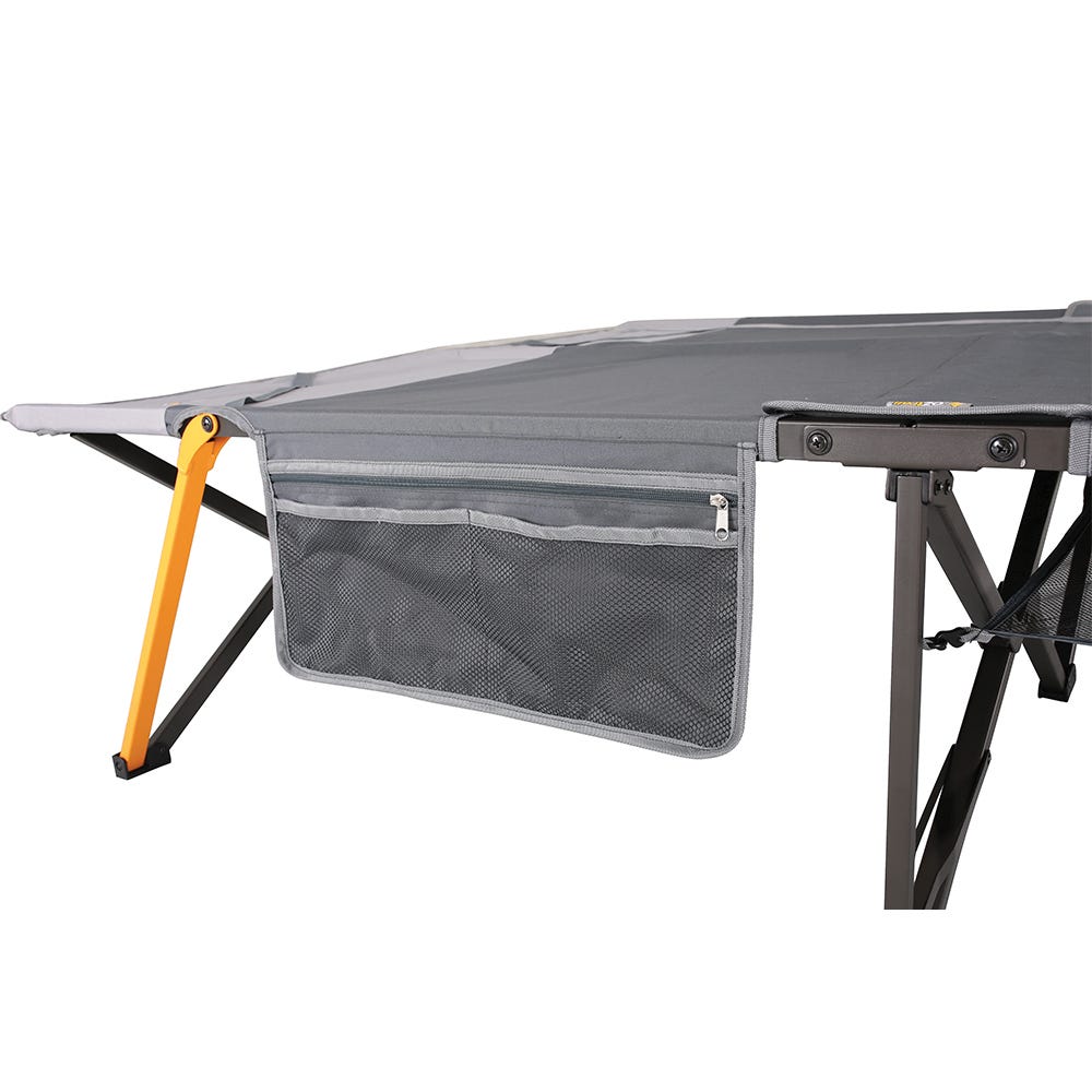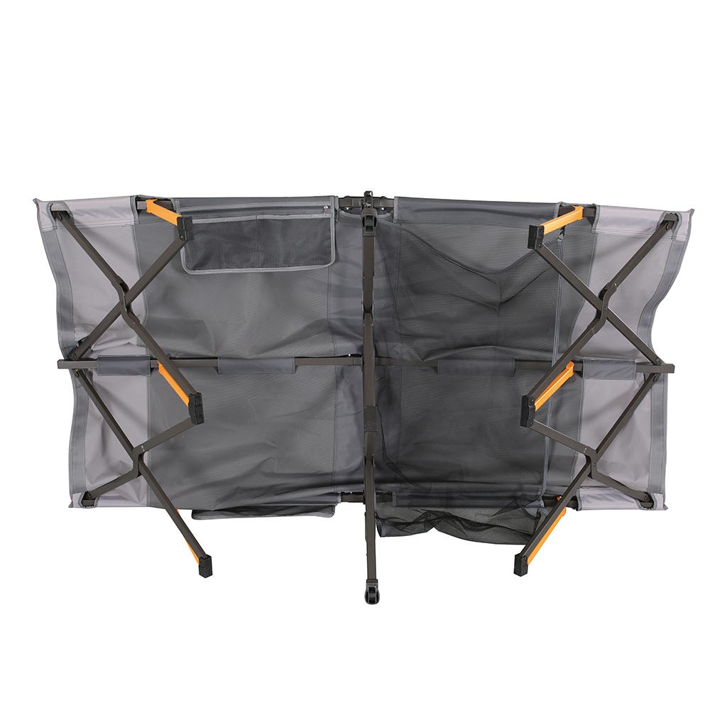 The OZtrail Easy Fold Stretcher - Queen is the ultimate full-length instant bed, with no assembly required! The set up will take you just 10 seconds, and save plenty of time better spent exploring the outdoors. The Easy Fold Stretcher will provide you with greater comfort, especially for tall people, with no head or foot cross bars, a vertical centre support bar for added stability, a fully flat sleeping surface as well as a side organiser pocket and a gear loft that's perfect for keeping essentials close by. The hard-wearing 600 deniers soft-touch fabric top and powder-coated steel frame make this Easy Fold Stretcher long-lasting and ideal for your next camping and outdoor adventure, or also to keep around the home for those extra guests!